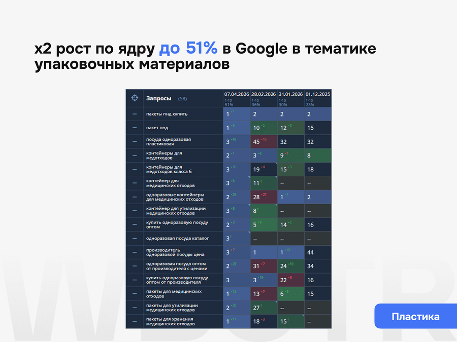 • Срез текущих позиций в сравнении с конкурентами из ТОП